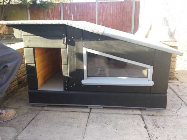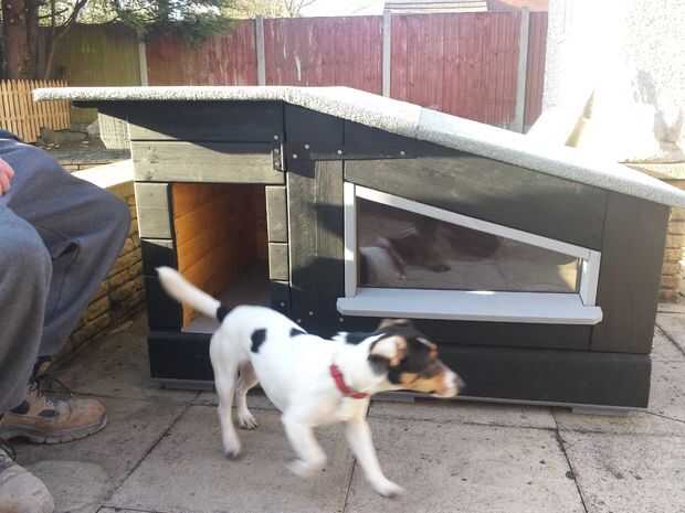 El perro era un poco escéptico en primero pero después de un par de semanas y después pondría una de sus mantas dentro de ahora felizmente va a comer sus huesos en la comodidad y le encanta subir en la parte superior a la corteza en el árbol de que no es un fan.