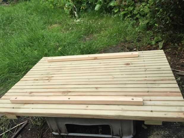 Las tablas entonces fueron sujetadas con tornillos y pegamento de madera.