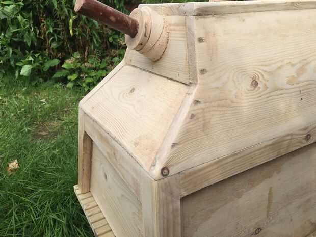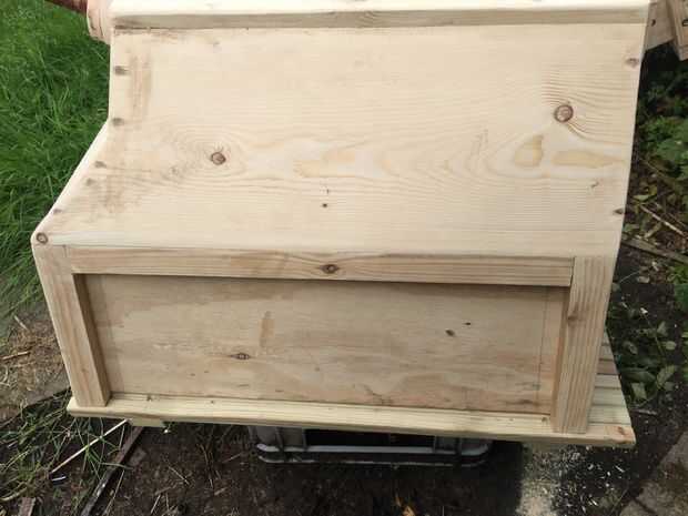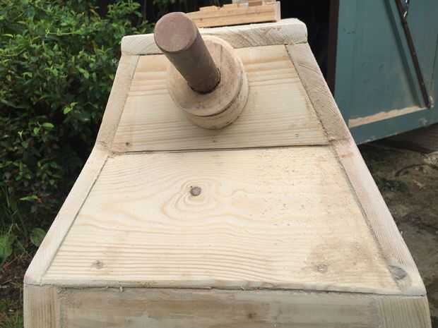Una vez completas dos puntales se cortaron con el ángulo deseado en la cara y atornillados a la parte inferior. Todo fue entonces pegado y atornillado.
