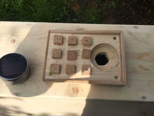 El panel de control fue hecho de un rectángulo de madera que fue con bordes de cortes. Estos fueron por consiguiente un ángulo. 9 botones fueron corte de 15 mm x 15 mm y 3 mm de alto. Estos son pegados y atornillados en su lugar.