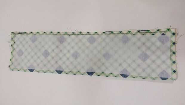 Doblar a la tela a la mitad, derecho contra derecho de la tela en el interior, con la interfaz hasta. Alinee los bordes largos y utilizar su máquina de coser para coser un tubo.