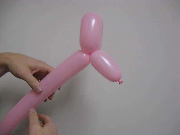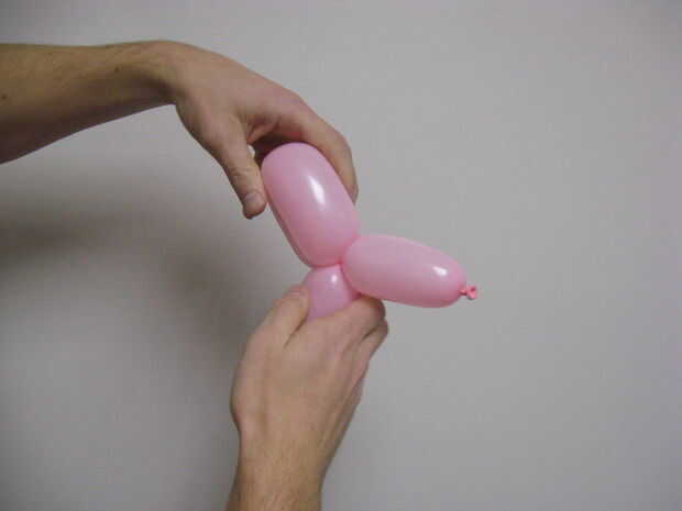 Iniciar a medio camino a lo largo del segmento corto y tuerza los dos segmentos 3 - 4 veces o hasta que el globo torcido cuando se libera.