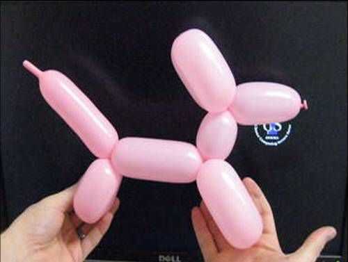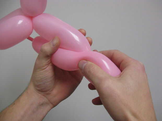 a partir de entre las patas delanteras y el extremo doblado del globo y giro los dos juntos los segmentos 3 - 4 veces o hasta que el globo torcido cuando se libera.