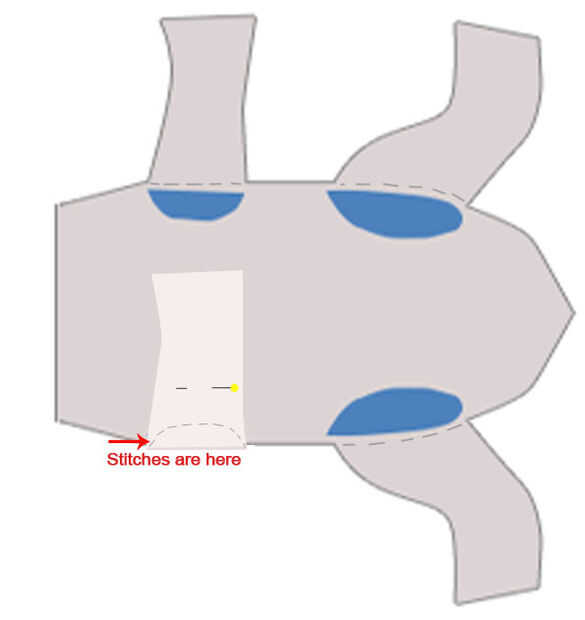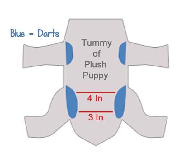 Usted tendrá que localizar el primer lugar donde se necesita un dardo. A continuación, pliegan y alfileres. Comience a coser su dart. Ver gráficos abajo para una explicación detallada. Coser los dardos en la pieza de la parte inferior o barriga. Luego, tomar las piezas de cuerpo principal y verás que la pieza tiene marcas de dos dardos por cada lado. Los dardos son pequeños y deben ser cosidos después de haber hecho la parte inferior de los dardos del estómago.