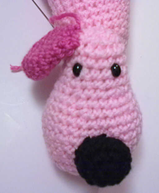 RND 3-4: sc alrededor de – 12 sts fije apagado dejar una cola para coser la nariz a la cabeza. Cosas con un poco de la pelusa antes de coser a la cabeza.