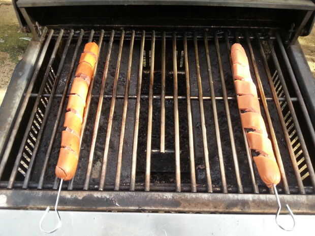 Este es un buen método si se está tratando de cocinar un número de perros a la vez y no un artilugio de titular poco ya que son más fáciles de girar y no desmoronarse como fácilmente comparado a poner directamente en la parrilla...
