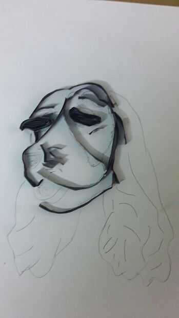 Ahora tu bosquejo y seguir el bosquejo con las tiras de papel como se muestra en la figura.