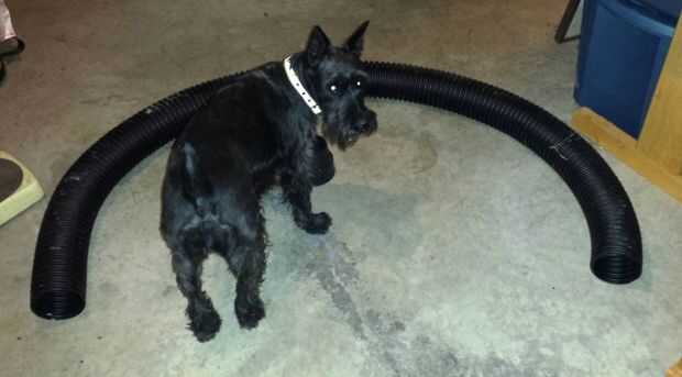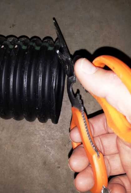 Sorprendentemente, el salto estándar neumático no utiliza una llanta real. Para la formación temprana de mi schnauzer estándar Isabel utilicé un aro del hula de mano, pero el día vino cuando necesitaba un aparato más realista. Para hacer un aro de tamaño de regulación para el salto de neumático, necesitaba 98 pulgadas de tubería de drenaje. Me hartó izquierda encima después de usar un rollo de 100 pies para equipar las bajadas de agua en dos casas. En el proceso, aprendí que esta materia es de paredes delgadas y algo frágil. Sería muy difícil cortarlo perfectamente todo el camino alrededor. Por lo tanto, corte demasiado largos, aproximadamente cuatro pulgadas entonces utiliza tijeras para cortar con cuidado hasta el tamaño ideal.