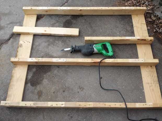 Primero, empecé con una plataforma de gran tamaño, 44 "x 56". Creo que éste fue utilizado para enviar una bomba de calor que se instaló en mi lugar de trabajo. Podrido antes de fuera lanzado el contenedor de basura. Tenía que ser una plataforma extra larga para proporcionar adecuado salto altura.