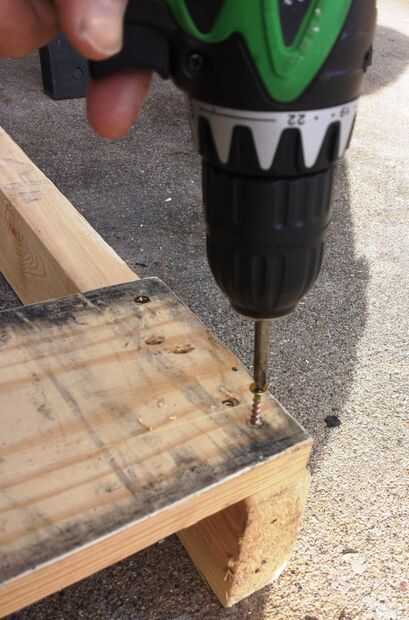 Después de la reducción de la plataforma a un simple cuadrado, se había convertido en algo wibbly-wobbly. Me aseguré que las esquinas eran cuadradas, entonces condujeron un par de tornillos de dos pulgadas en cada esquina, pre-perforación para evitar que se resquebraje. Rigidez estructural mejorada considerablemente, he usado el uno restante uno de ocho que no había partido del paso anterior para tapar la parte superior del marco, proporcionando un miembro por el cual colgar el neumático. Como ya era la longitud apropiada, simplemente coloque el tablero a la parte superior del marco, taladrados y condujo un par de tornillos de 2" en cada extremo.