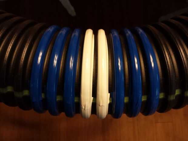 Se ha añadido tiras de cinta aislante de colores al neumático para mejorar su visibilidad. No estoy seguro de cuán necesario este paso es el perro, pero es una práctica estándar. Una vez que el clima se calienta yo se pintar la madera con pintura exterior de la casa, sólo porque va a utilizar el salto principalmente al aire libre.