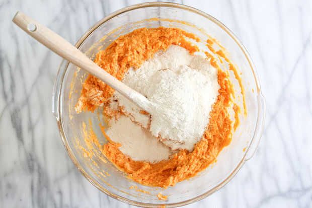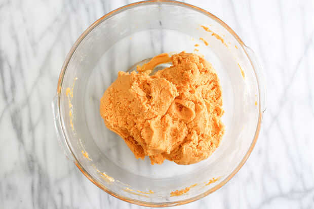 Añadir en el último 1/2 taza de harina y mezclar. Después de esto, la masa será suave pero no húmeda. Debe reunirse fácilmente y no ser desmenuzable.