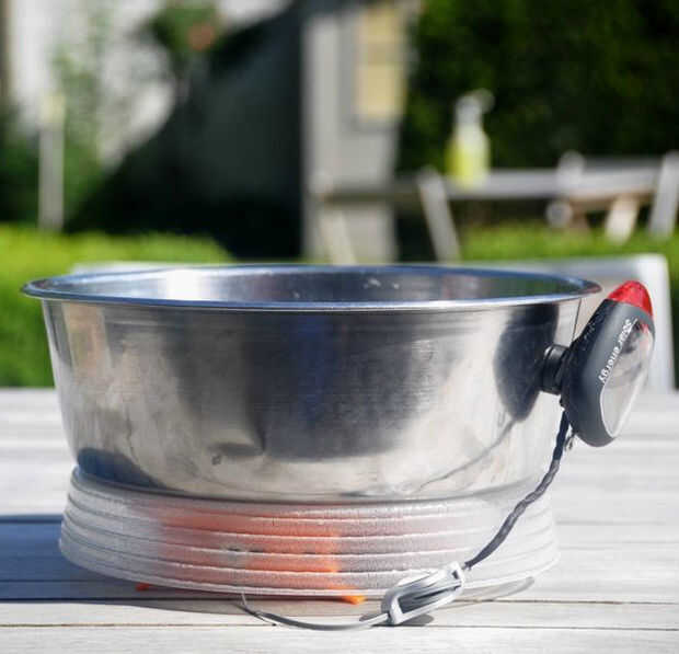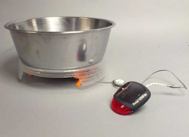 Tareas que parecen obvio para nosotros pueden ser un verdadero desafío para una persona con discapacidad visual. Comprobar si está vacío el depósito de agua de su perro guía era un desperdiciador de tiempo y físicamente exigente trabajo para invidentes. Como no puede ladrar el perro guía, incluso cuando es hambre o sed, su tazón de fuente de consumición era a veces vacío durante algún tiempo. Nuestra solución es un sistema de balance que se pone debajo del tazón del beber. Cuando el peso del agua en el recipiente es demasiado bajo se activa un interruptor. Esto activa una unidad de señalización (luz intermitente accionada solar) que inmediatamente llama la atención del usuario y le llene el tazón de agua impulsa. Para que el sistema tan eficiente como sea posible le ofrecemos la posibilidad de ajustar el contacto con el peso correcto de una manera muy fácil de usar. Esto hace posible disparar la señalización según se requiera, por ejemplo cuando el nivel del agua es aproximadamente 1cm en el vaso de beber, lo que es muy poco para que el perro todavía pueda beber correctamente.