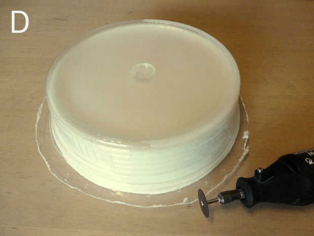 Como alternativa se puede hacer una cáscara de madera, cartón o plástico. Shure sólo hace que la cáscara tiene un diámetro de unos 200mm y altura de 30mm. Proporcionar la cáscara de una hendidura, como muestran las fotos.