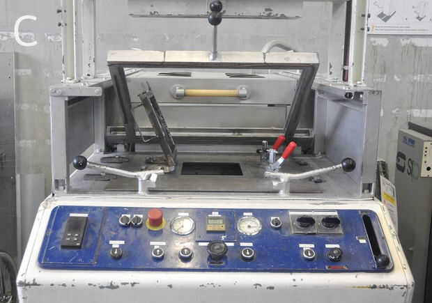 C utilizar el molde de espuma de PU de 'B' para termoformado la cáscara final. Como material utiliza PS, debido a las propiedades de buena thermform.