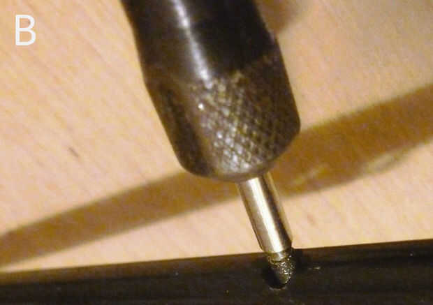 C hacer dos boquetes de 25 mm, a cada lado de la barra de carbono, perfectamente delineada el uno al otro y el agujero central hecho en 'B'.