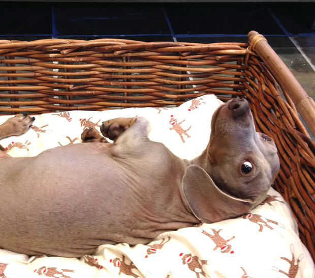 Mi perro wiener haba Possum es un show tapón debido a su color inusual. Pero toda la atención se pone tiene una desventaja porque la gente tiene casi más acariciados de la piel justo al lado de él. Él se estremece de incluso el más mínimo frío, para hacer una cama de perro caliente para él fue la respuesta. Sí, estoy bromeando sobre la parte de caricias, realmente sufre de "Calvicie de patrón Dachshund", probablemente debido a su color y realmente enfría fácilmente, pero un montón de perros agradeceria una buena cama caliente caliente.