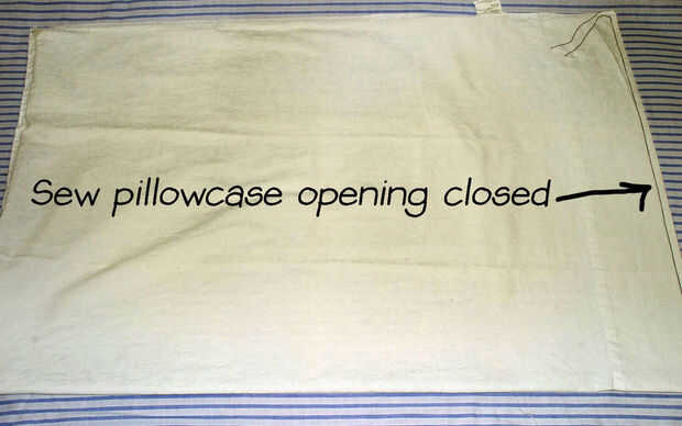 Ya que tienes dos fundas de almohada, use la menos agradable para esta parte porque se ocultarán. La segunda funda de almohada (mejor) va a ser usado para cubrir éste por lo que se puede quitar para lavar.