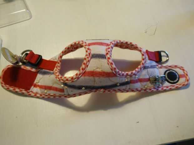Coser el suministro de corriente en el arnés. Asegúrese de mantener el interruptor accesible y el USB listo para recargar!