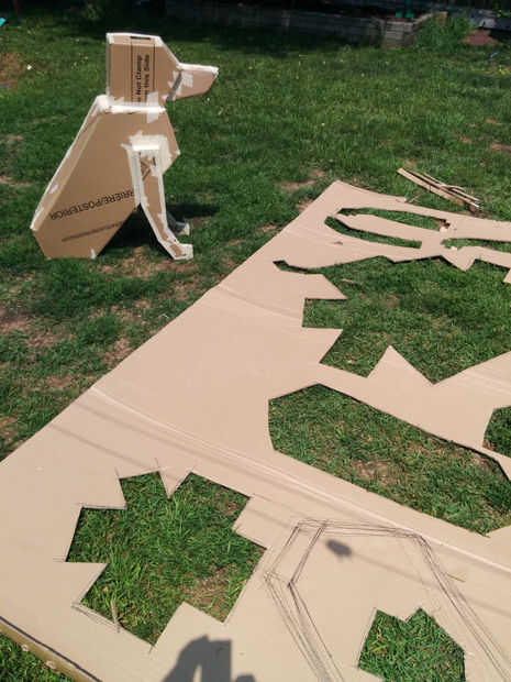 Esto demuestra que los patrones de cortan de la cartulina y la armadura de perro comienza a tomar forma.