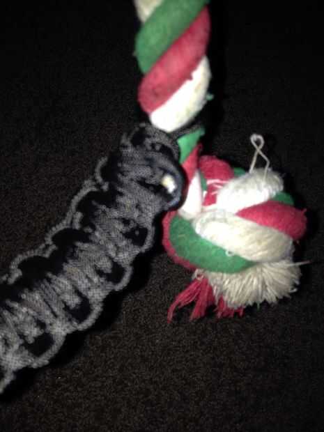 odio a perder nada por lo que cuando tuve algunos trozos de camiseta de la izquierda de mi Bolso del mercado del reciclado del proyecto, una bombilla fue cuando pensé en mi nuevo cachorro, Kiwi. He visto algunos juguetes de cuerda, por lo que hizo su