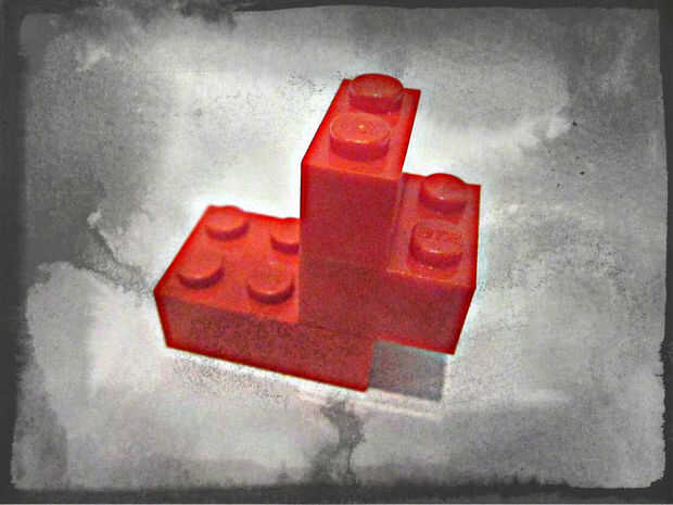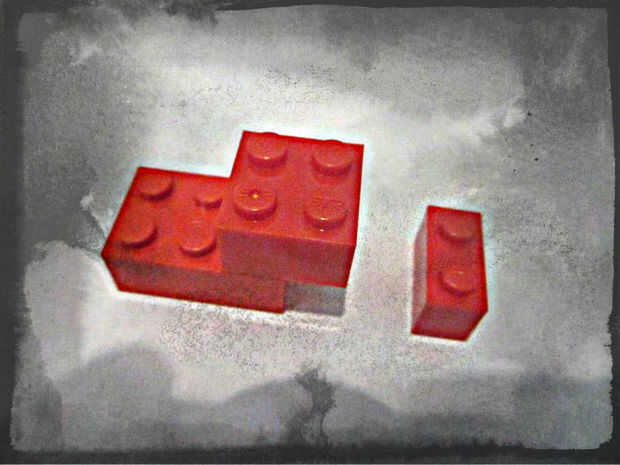 Tome el ladrillo de 2 por 1 y fíjelo al ladrillo de 2 en 2 como se muestra en la imagen de arriba.