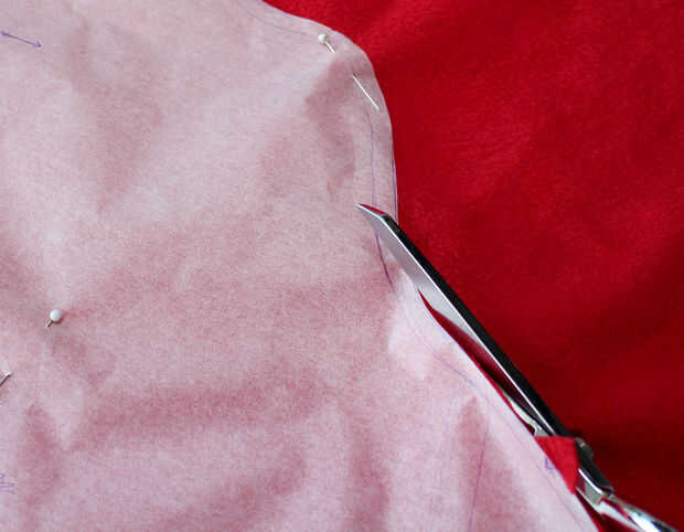 Lo primero es lo primero, corta todas las piezas del patrón. Las dobles flechas indican la dirección del estiramiento de los tejidos, pero no importa todo lo que mucho. Las líneas azules punteadas indican aproximadamente donde coser. Asegúrese de incluir los triángulos para alinear las piezas, aunque algunas de ellas pueden haber conseguido perdidos mientras que estaba rastreando las exploraciones. Además, no dude en agregar los huesos y las entrañas más o diferentes - corté la mayoría de ellos sin un patrón de papel, por lo que el único que incluye es el intestino.