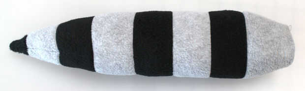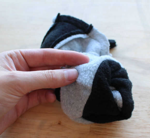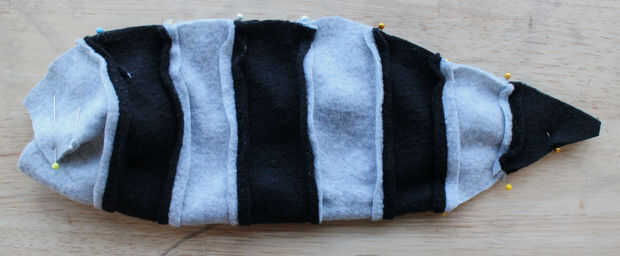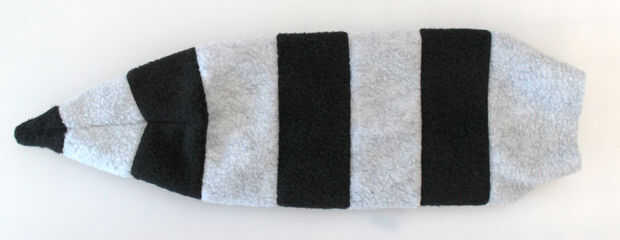 Cortar a la tela de la cola que acaba de hacer, siguiendo el patrón de papel. Coser las costuras y gire el cola derecha-lado-hacia fuera. Cosas ligeramente con el relleno, pero no coser el extremo cerrado (que será cierre cosido cuando se une al cuerpo).