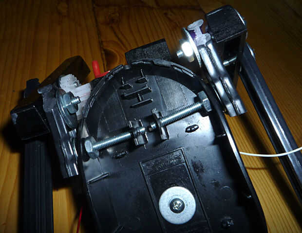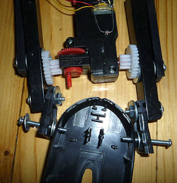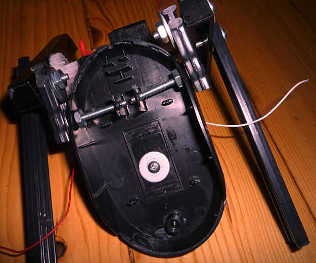 Entonces me fijo la caja de engranajes en la parte inferior del ratón, con tornillos y pegamento.