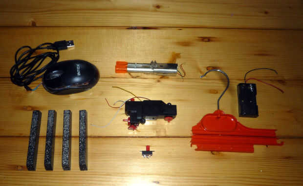 • 1 caja (con motor) de un juguete. Usé uno de un arma de juguete barato. Puede utilizar uno de un coche de juguete con buena tracción.