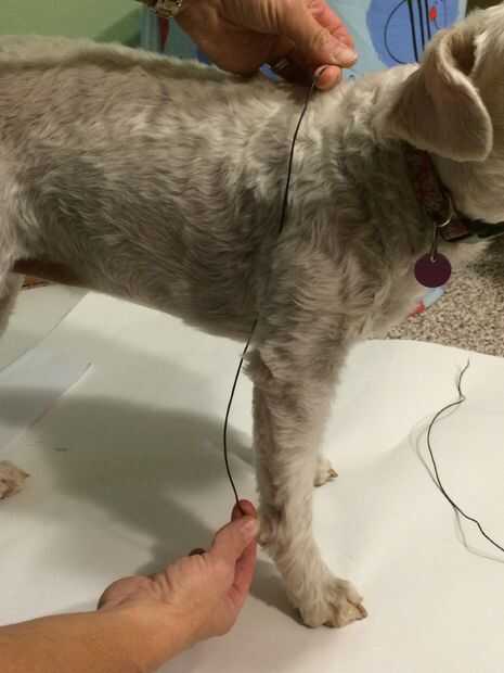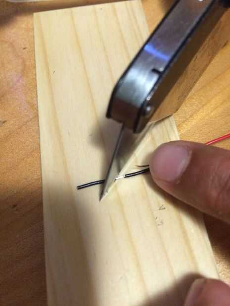1. cortar 4 pedazos de cable de conexión. Medir desde el ángulo de los perros primero conjunta del centro de los perros detrás. De corte y Desforre aproximadamente 1/4" en ambos extremos de los 4 cables.