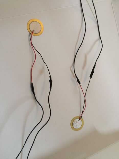 2. extremos de tira de los cables de dos discos piezoeléctricos