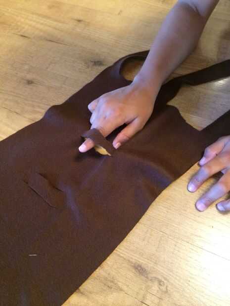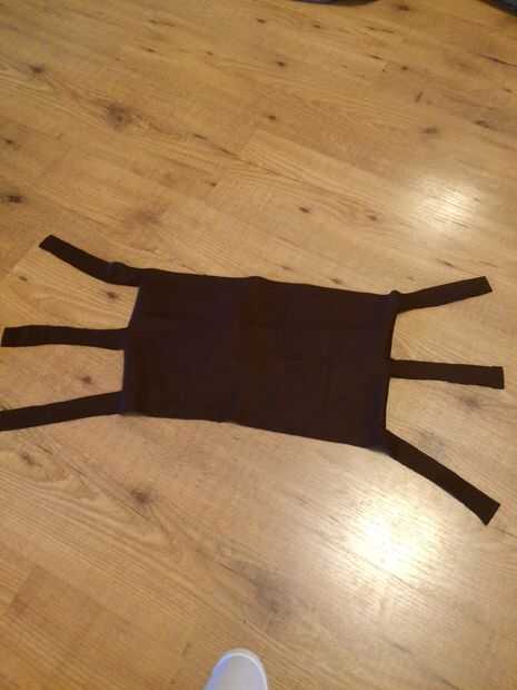Tomar algún material elástico como el paño grueso y suave. Cortar un rectángulo que mide la longitud de sus perros como el ancho. El ancho debe ser más largo que el tupperware. La longitud debe ser suficientemente largo para envolver alrededor de la barriga con suficiente longitud para cortar lazos.