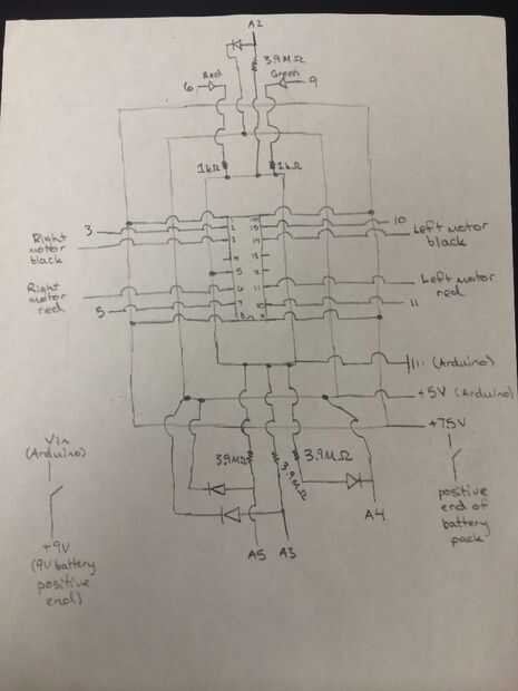 Conecte el conductor conectado a la clavija de puente de H 2 a Arduino entrada 3. Conecte el conductor conectado a la clavija 7 a Arduino entrada 5. Conecte el conductor conectado a la clavija 10 a Arduino entrada 11. Conecte el conductor conectado a la clavija 15 a Arduino entrada 10.