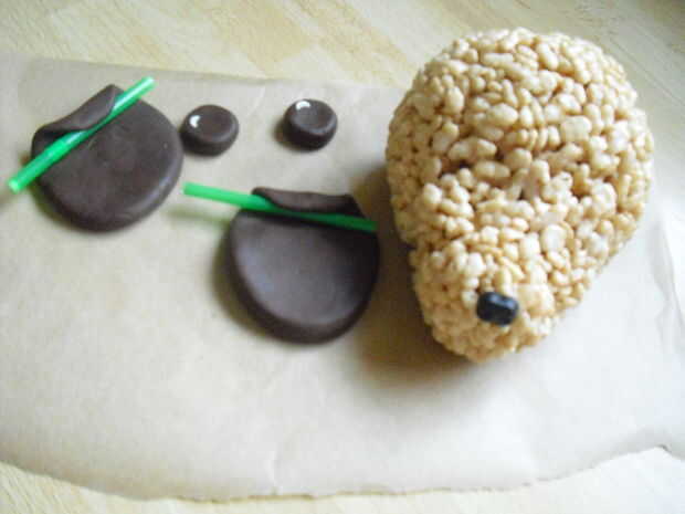 Que algunos oídos y ojos de glaseado de fondant. Utilizar formas ovaladas para los oídos, doblar un extremo en una paja y dejar para endurecer en esta forma.