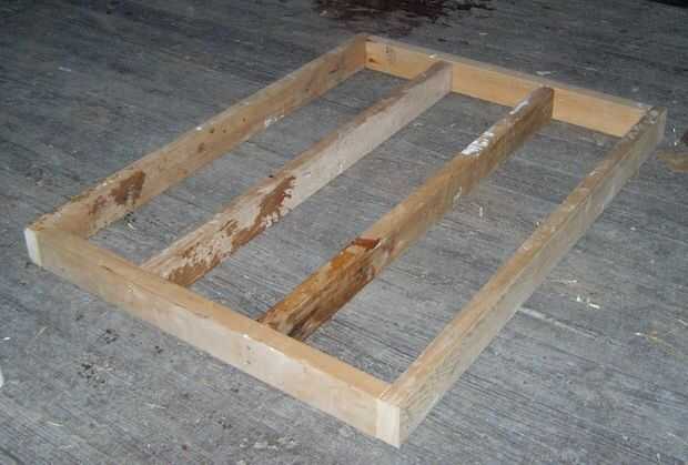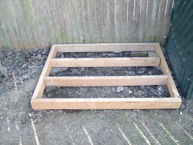 Es un marco de 2 x 4 PT con dos piezas de soporte en el centro atornillada con tornillos de la cubierta.