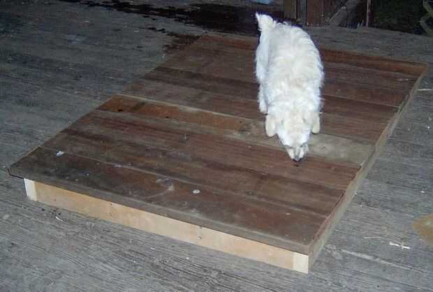 mi perro es como 10-11 y como llegar. bajando los pasos de la cubierta fue llegar a ser un problema (Mostrar volaría hacia abajo em después de skwurls) y mantener su seguro construyó una rampa de perro del lado de la cubierta para como 10 dólaresPaso