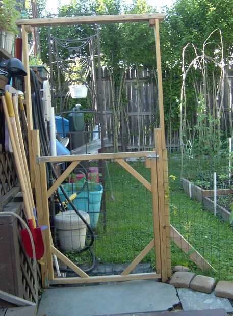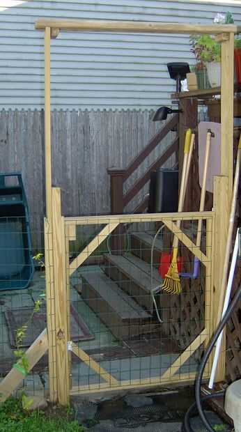 tuve que hacer una puerta para llegar a mi lado de jardinería de la yarda, así que poner agentes derecha al lado de la cubierta. Utilizado para los postes de madera de 2 x 4 PT simplemente porque 4 x 4 son demasiado para mí manejar por mí mismo. El cargo contra la cubierta se atornilla en el lado de la estructura de la cubierta para mayor estabilidad. Configurar las entradas en 17 agujeros profundos con relleno de grava en. Yo debo han utilizado cemento estoy pensando, pero por ahora funciona.