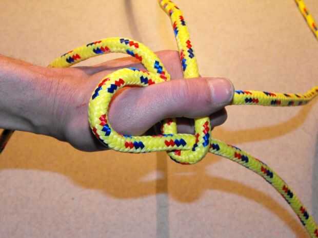 Acero primer bucle alrededor del pulgar y sobre segunda cuerda, con el pulgar para sostener la primera cuerda en lugar (ver imagen)