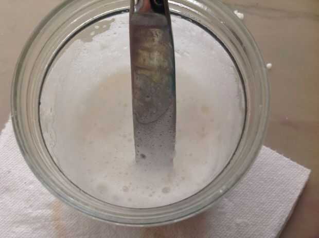 Coloque en la jarra y añadir unas gotas de agua una cucharada de vinagre