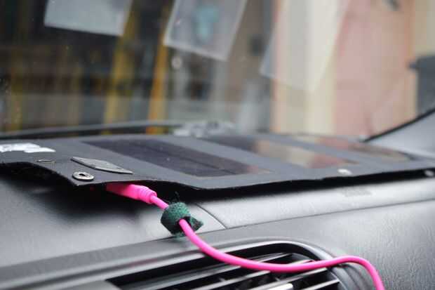 Enchufe la próxima vez que pegan esperando en el coche a alguien y no quiere perder gas al ralentí, tiro su cartera solar en el salpicadero, y está cargando!