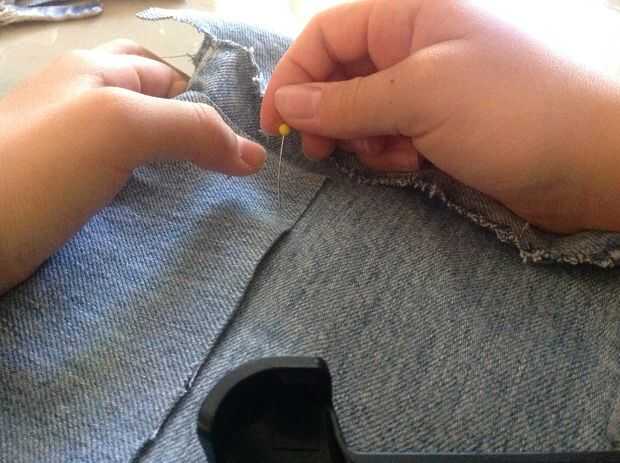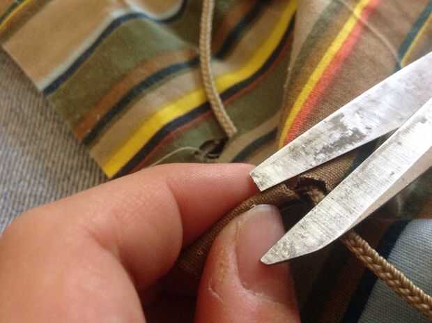 Hacer agujeros con la tijera en la parte superior de la mochila frontal
