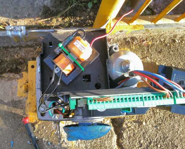El transformador utilizado es de un cargador de la cerca. Se ha diseñado para proporcionar menos de 2 miliamperios. Es no letal, pero da una sacudida desagradable. Hice una conexión a tierra a un lado de la bobina de alto voltaje para proporcionar un camino a tierra. Esto es necesario ya que los pies de perritos en el hormigón próximo.