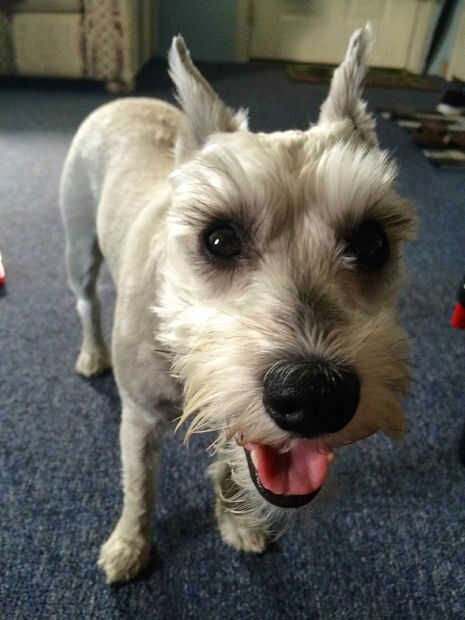 Dexter, mi schnauzer miniatura, decidió estar muy interesado en mi trabajo rompieron una imagen de soy mientras fui.