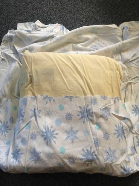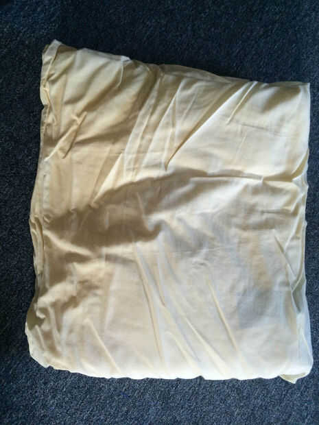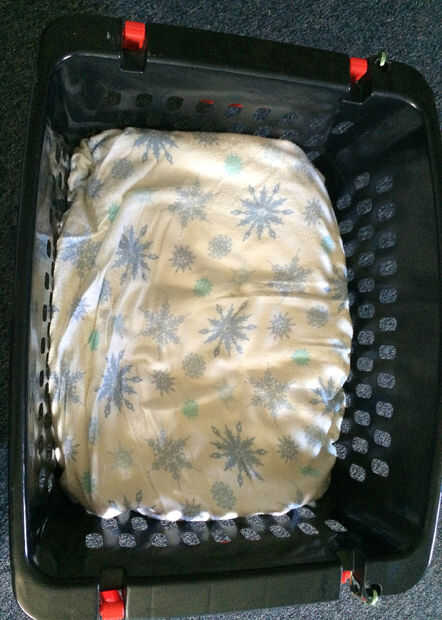 Tomé una sábana vieja y cortar un cuadrado de él. Envuelto una almohada en él para que mi perro puede tener algo suave para sentarse para hacerla más cómoda.