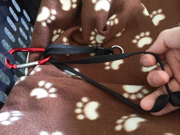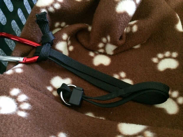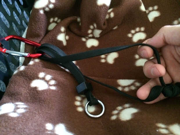 Luego he añadido un clip de aseguramiento a la restricción para más tarde a mis perros arnés o collar.