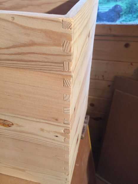 Corte los paneles al tamaño correcto y pegar con las articulaciones de la caja porque no me gusta con tornillos cuando el arte es para ser utilizado por los animales y las articulaciones de la caja son la mejor solución porque hay un área de contacto grande para el pegamento.