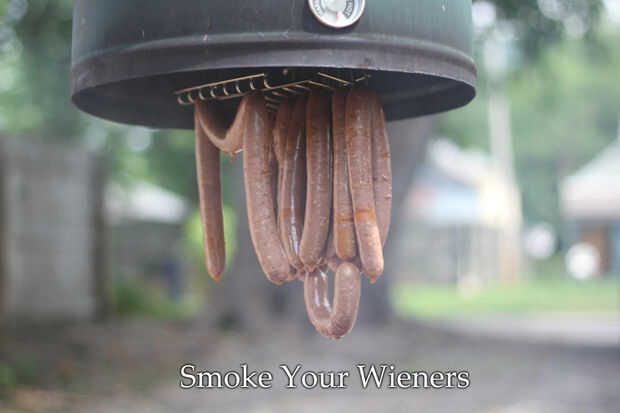 Supongo que se podría evitar fumar las salchichas si usaste una ahumado sal y pimentón. Sólo tienes que adivinar cuánto de sal ahumada para utilizar. Demasiado y sus perros pueden salir que huele como el hollín de la chimenea.