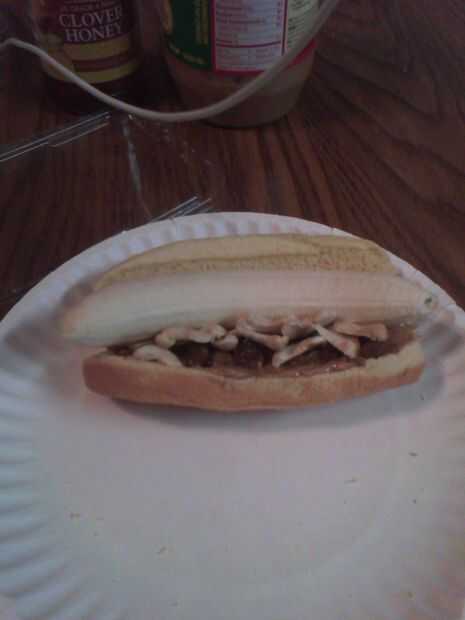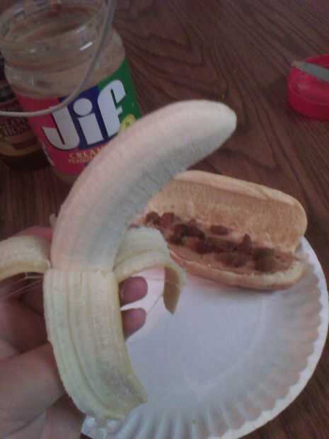 Pelar el plátano y plop en el moño. Es decir, no les gusta, deje caer, ni nada. Acaba de poner el plátano en el bollo.