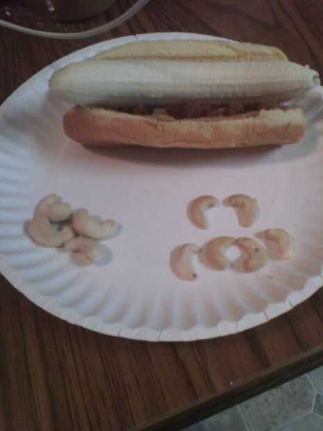 Tomar algunas castañas de cajú y empezar a agrietarse por la mitad. Esto sólo hace más fácil de poner en el pan y más fácil de comer. Pero no ir alrededor de los grietas en todo medio caprichosamente aunque tenga grietas en la mitad lateral. Algunos de ellos ya se raja un poco sobre ellos, algunos no. Cueste lo que cueste, tomar ambos sus miniaturas y ponerlos en el centro de la parte superior del interior de la nuez de la India. ¿Complicadas, justo? Lo siento no tengo ninguna foto de eso, pero tiene dos manos y no tengo a nadie para tomar la fotografía para mí.